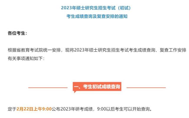 以上是『国家考研成绩查询』2023年研究生考试成绩发布时间|分数线查询的全部内容,更多关于研究生考试,研究生考试成绩,全国研究生,考研考试网快讯信息敬请关注国家考研考试网,及关注华图公务员考试网。
