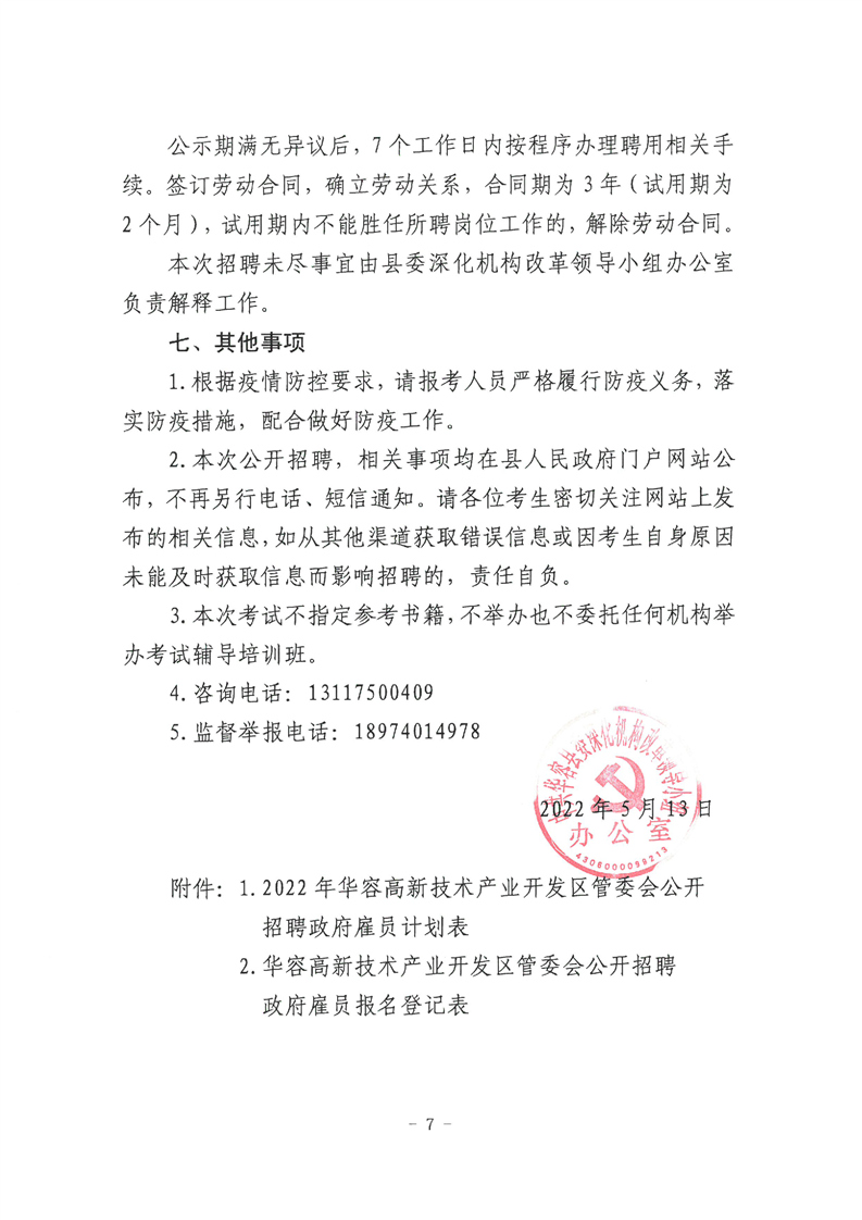 原文标题:2022年华容高新技术产业开发区公开招聘政府雇员的公告